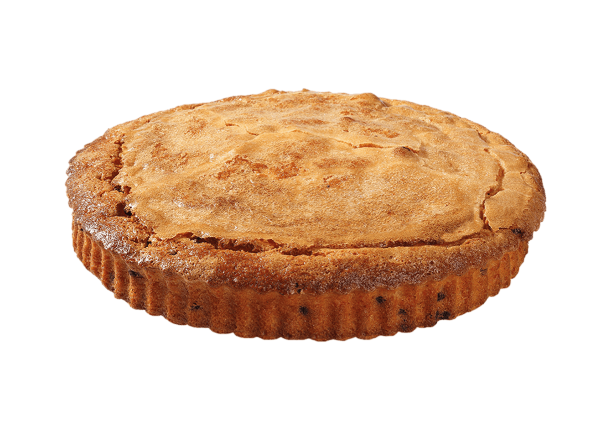 Soffice torta allo yogurt con prelibate goccine di cioccolato fondente ricoperta da cristalli di zucchero.