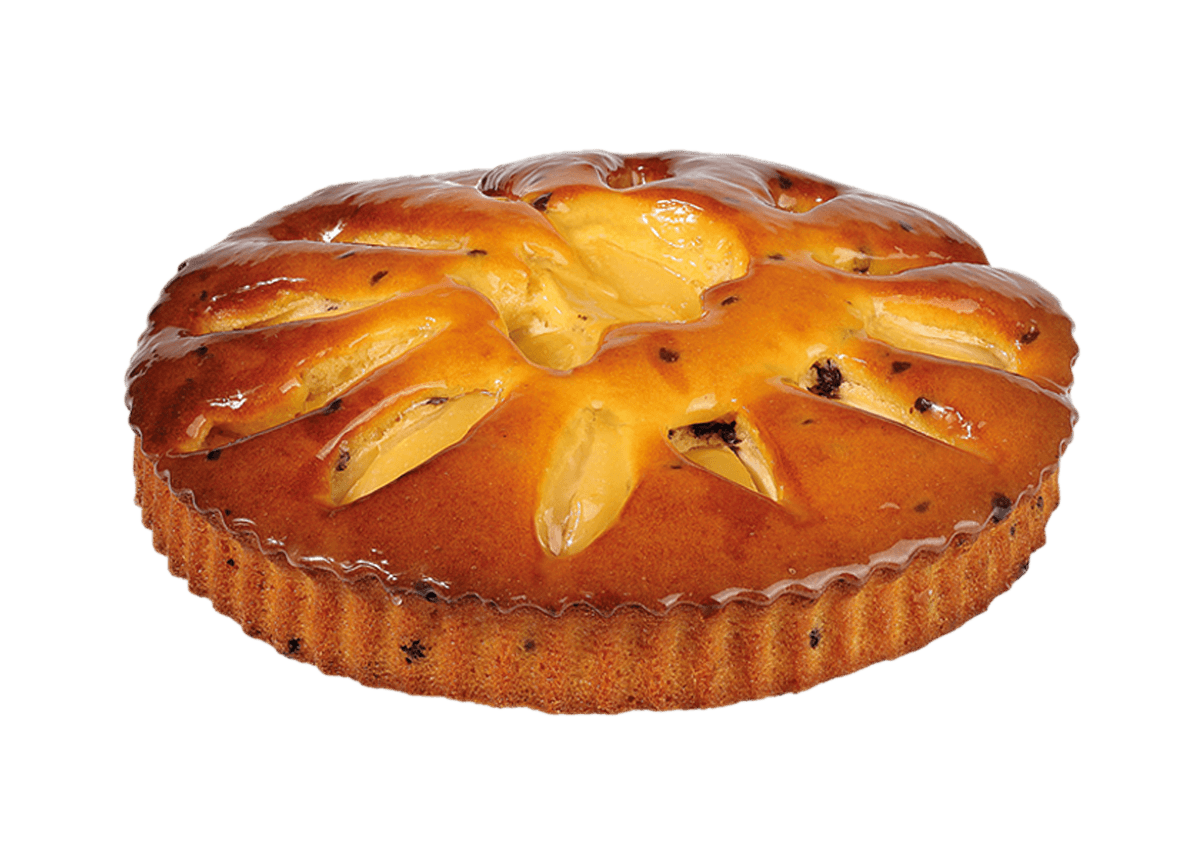 Impasto molto soffice a base di yogurt con gocce di cioccolato guarnita con pere a fette.