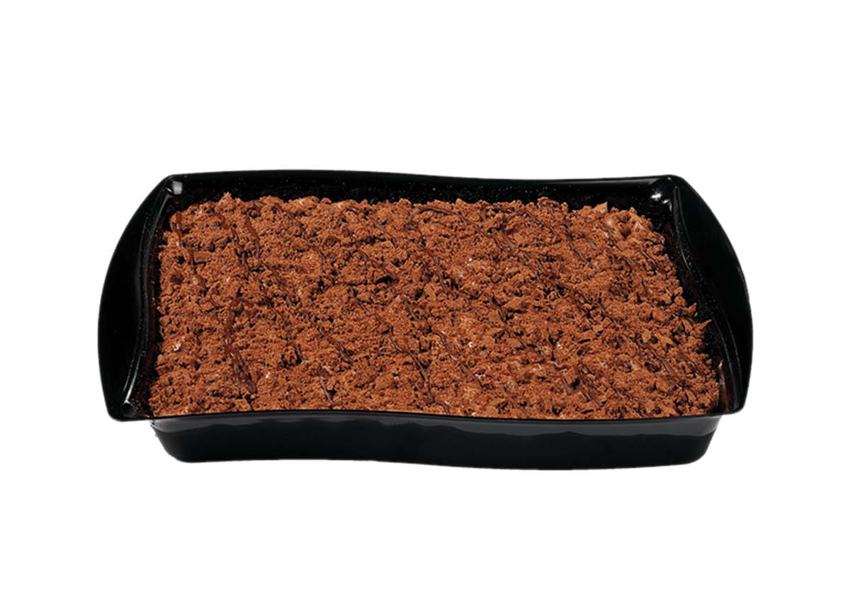 Croccanti frollini al cacao ricoperti da squisita crema e salsa al cacao, decorati con granella di biscotto.