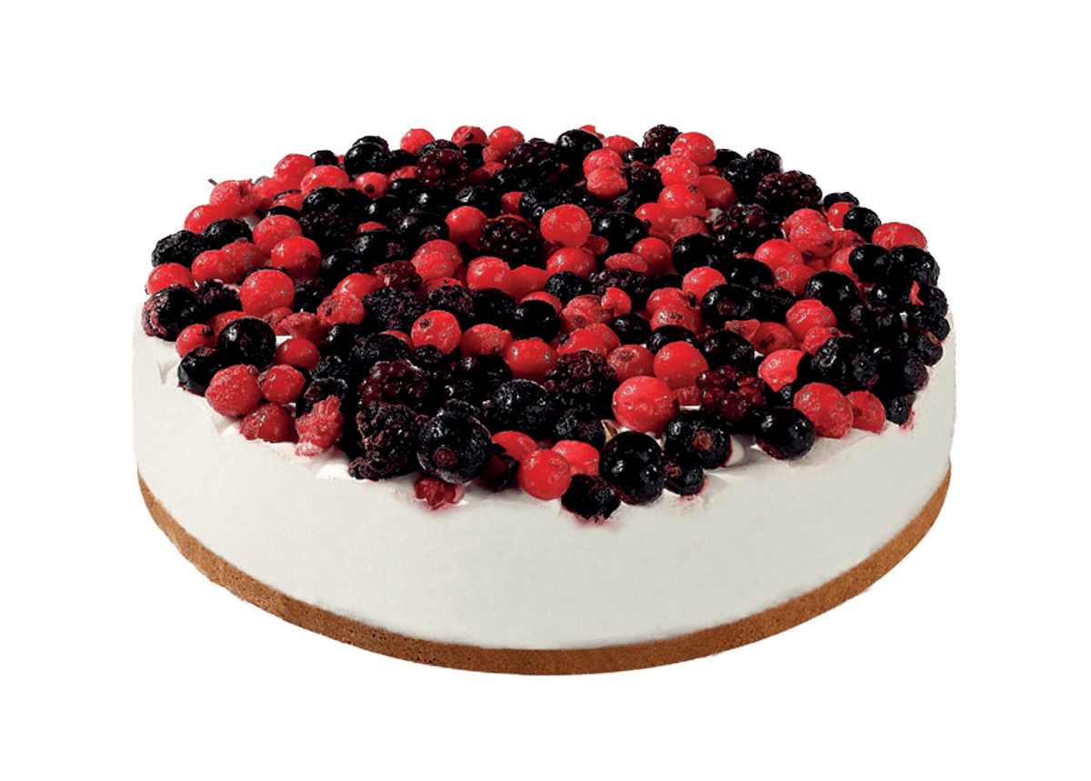 Gustosa base di biscotto farcita con due strati di crema chantilly, pan di spagna e frutti di bosco.