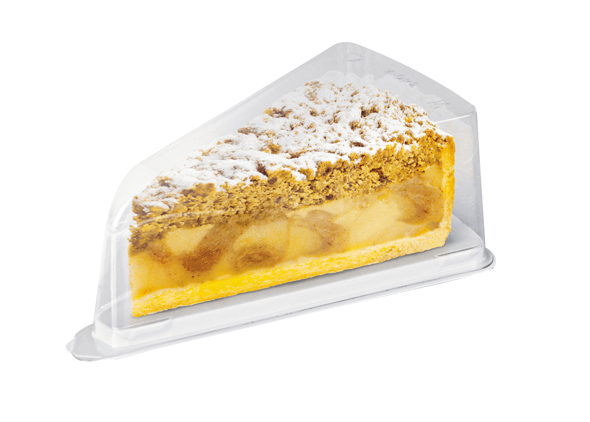 La pasta frolla è realizzata con farina di riso, burro di cacao e zucchero muscovado: ripiena di cubetti di pera e cannella, il tutto ricoperto da briciole croccanti.